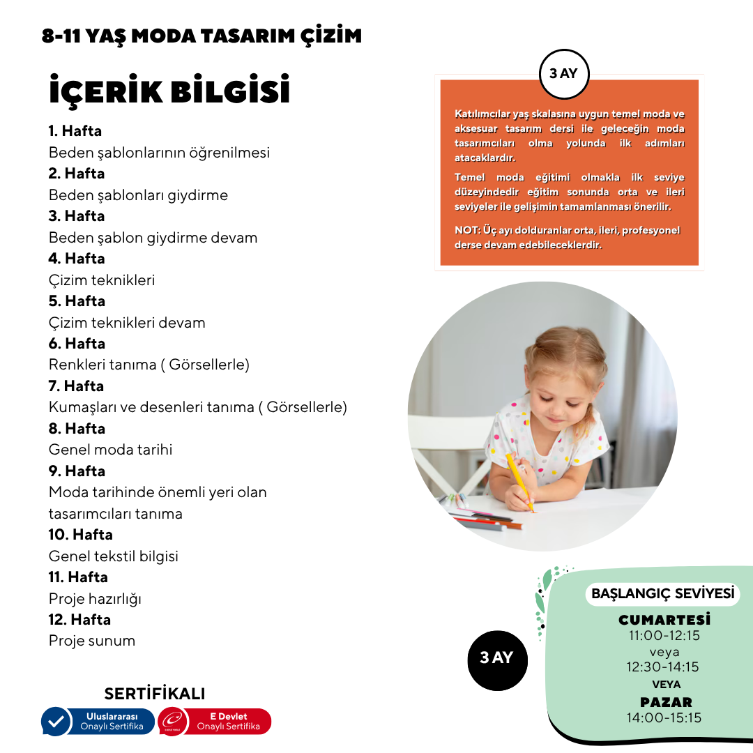 8-11 YAŞ MODA TASARIMI ÇİZİMİ ( Yüz Yüze ) - Başlangıç Seviyesi