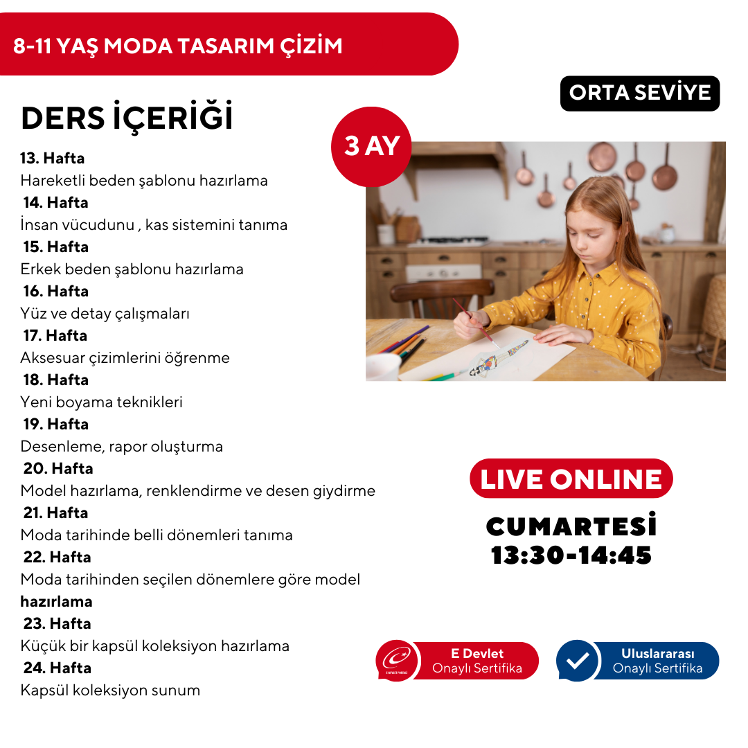 8-11 YAŞ MODA TASARIMI ÇİZİMİ ( Online ) - Orta Seviye