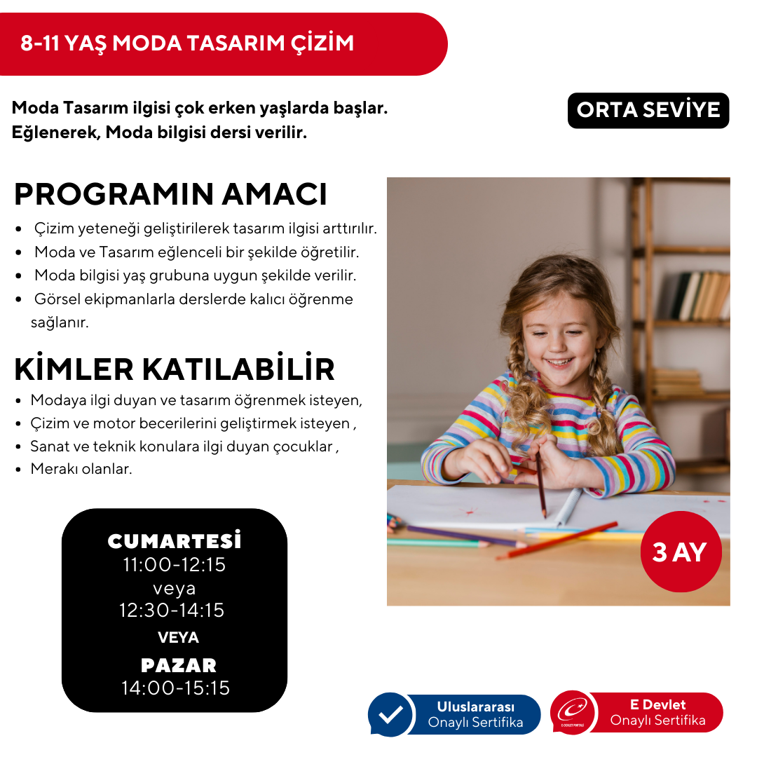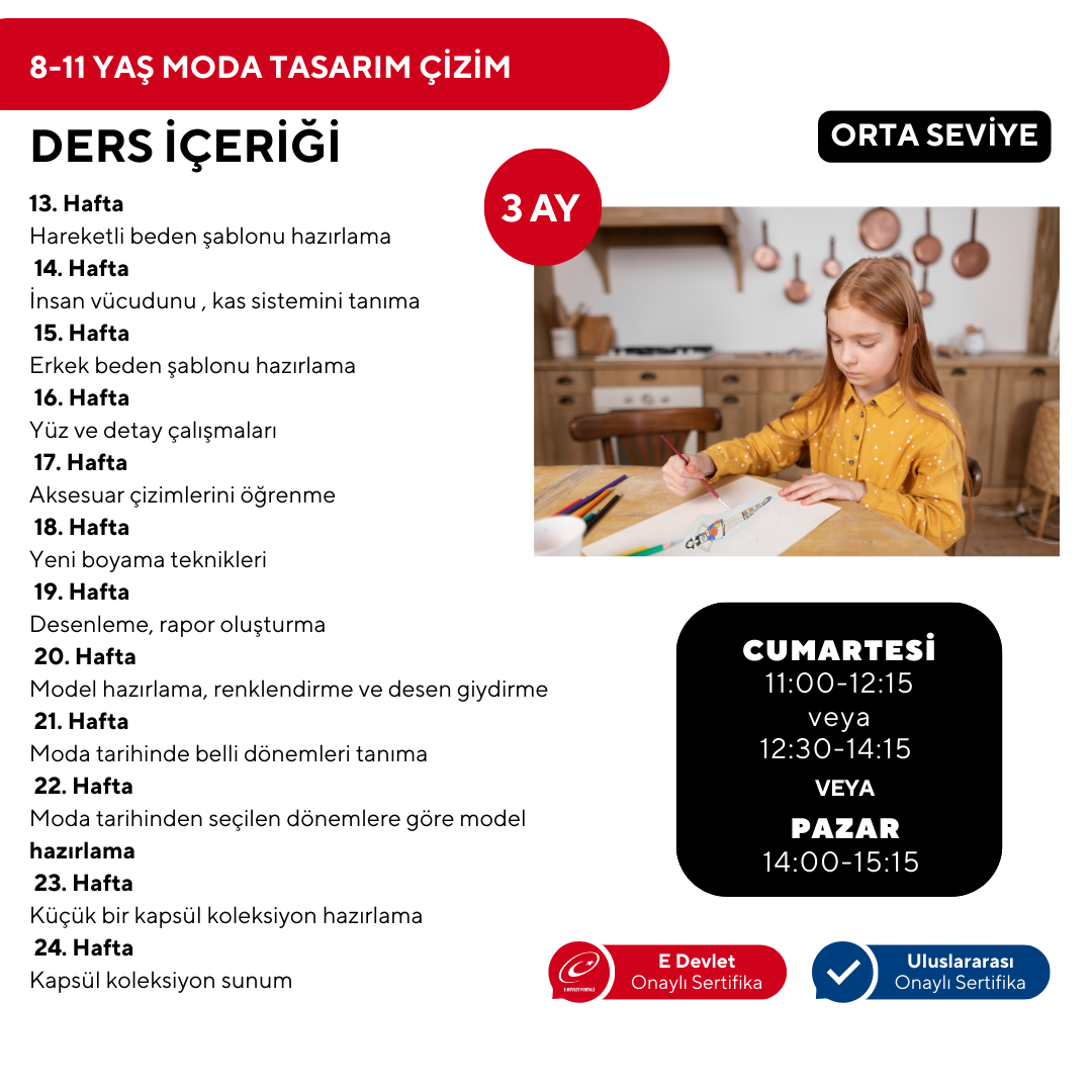 8-11 YAŞ MODA TASARIMI ÇİZİMİ ( Yüz Yüze ) - Orta Seviye