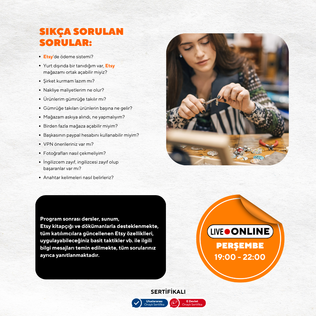 • "Sertifikalı Dersimizle bir Etsy Girişimcisi olacaksınız.