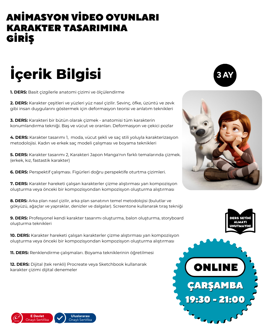 3 Ay Boyunca Dersimizde profesyonelce nasıl karakter çizileceğini Öğrenmeniz için gereken tüm konuları alacaksınız.