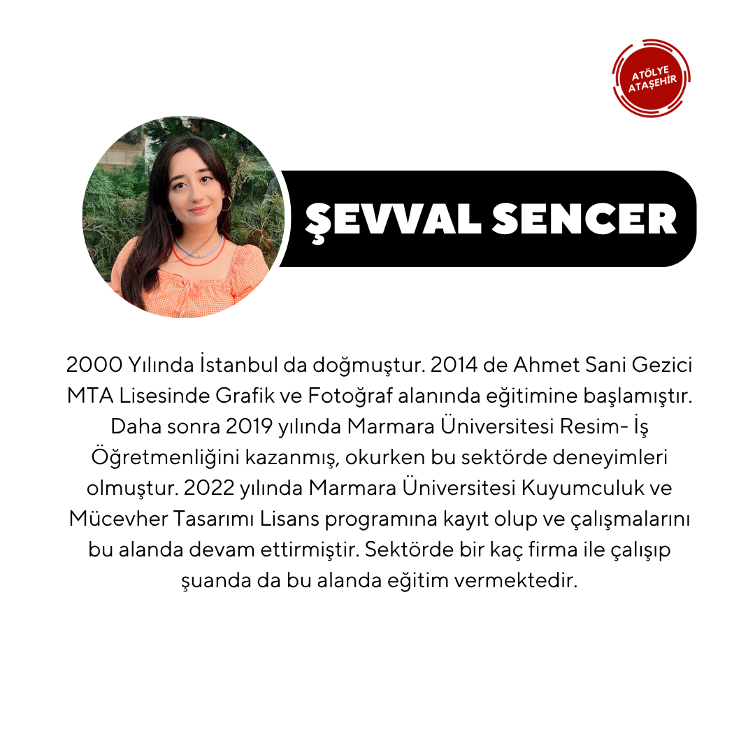 2000 Yılında İstanbul da doğmuştur. 2014 de Ahmet Sani Gezici MTA Lisesinde Grafik ve Fotoğraf alanında eğitimine başlamıştır. Daha sonra 2019 yılında Marmara Üniversitesi Resim- İş Öğretmenliğini kazanmış, okurken bu sektörde deneyimleri olmuştur. 2022 yılında Marmara Üniversitesi Kuyumculuk ve Mücevher Tasarımı Lisans programına kaydolup ve çalışmalarını bu alanda devam ettirmiştir. Sektörde birkaç firma ile çalışıp şu anda da bu alanda eğitim vermektedir.