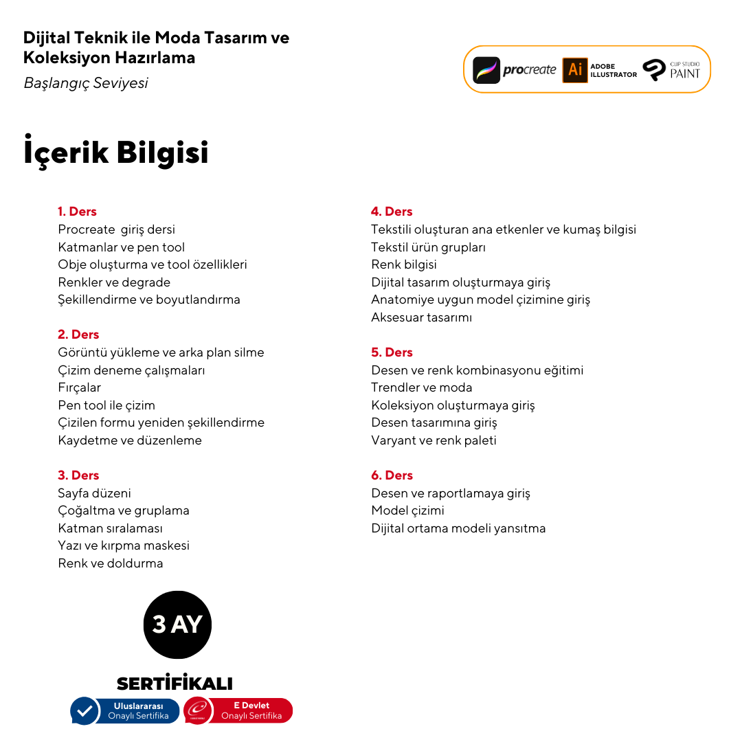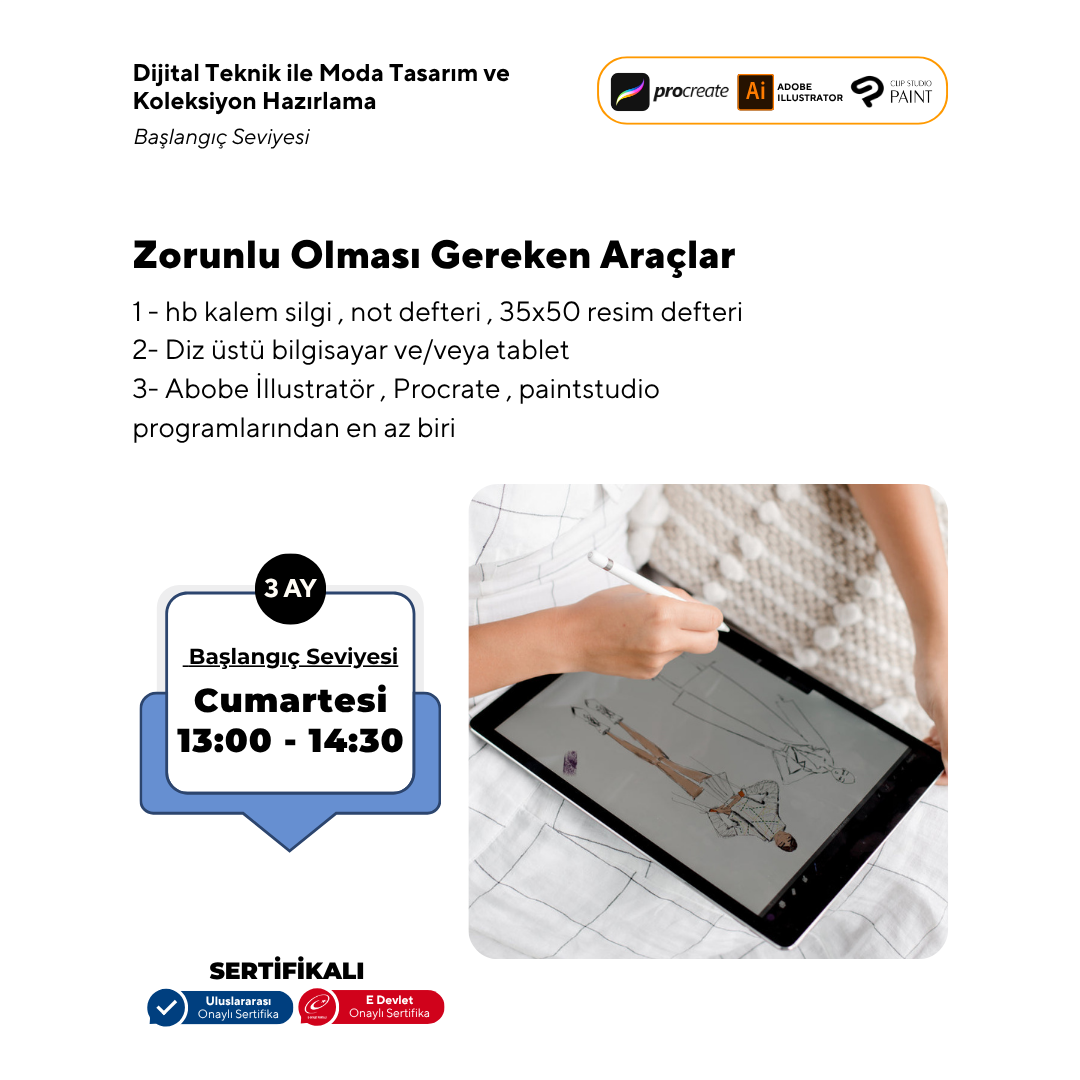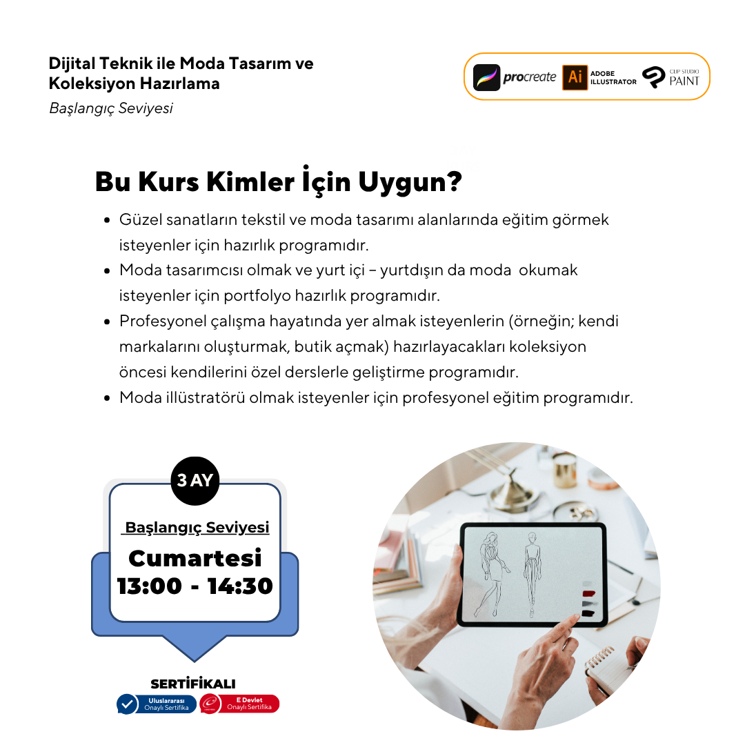 Dijital Teknik ile Moda Tasarım ve Koleksiyon Hazırlama Başlangıç Seviyesi(YüzYüze)