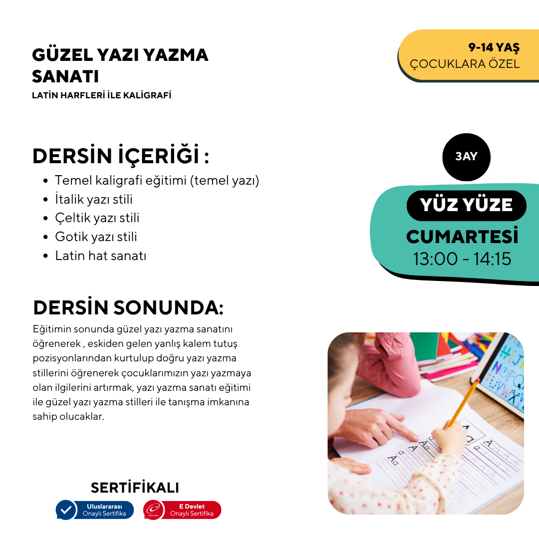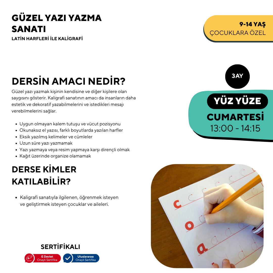 Güzel Yazı Yazma Sanatı (Kaligrafi ) -9-14 Yaş Yüz Yüze