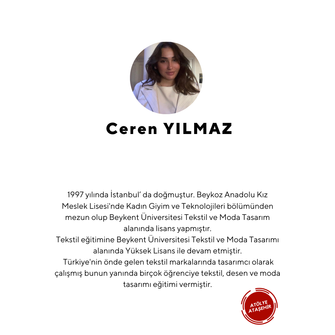 1997 yılında istanbul’ da doğmuştur. Beykoz Anadolu kız meslek lisesinde kadın giyim ve teknolojilerin den mezun olup Beykent üniversitesi Tekstil ve Moda Tasarım alanında lisans yapmıştır. Tekstil eğitimine Beykent üniversitesi Tekstil ve Moda Tasarımı alanında Yüksek Lisans ile devam etmiştir. Türkiyenin önde gelen tekstil markalarında tasarımcı olarak çalışmış bunun yanında birçok öğrenciye tekstil,desen ve moda tasarımı eğitimi vermiştir.