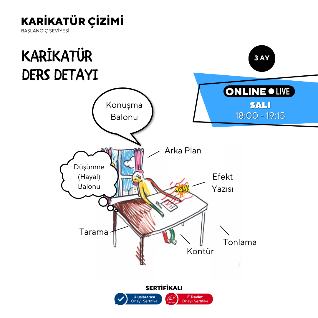 Bu eğitimlerin neticesinde ise katılımcıların kolaylıkla karikatür çizmeye başlayabileceklerini ifade edebiliriz. Karikatür eğitimi ile çizim yeteneğiniz artar, mizah duygunuz gelişir Bu konuda hiçbir yeteneği olmayan çocuklarınız başarı elde edebileceklerinden şüpheniz olmasın.