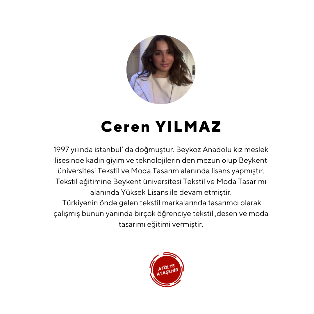 1997 yılında istanbul’ da doğmuştur. Beykoz Anadolu kız meslek lisesinde kadın giyim ve teknolojilerin den mezun olup Beykent üniversitesi Tekstil ve Moda Tasarım alanında lisans yapmıştır. Tekstil eğitimine Beykent üniversitesi Tekstil ve Moda Tasarımı alanında Yüksek Lisans ile devam etmiştir. Türkiyenin önde gelen tekstil markalarında tasarımcı olarak çalışmış bunun yanında birçok öğrenciye tekstil,desen ve moda tasarımı eğitimi vermiştir.