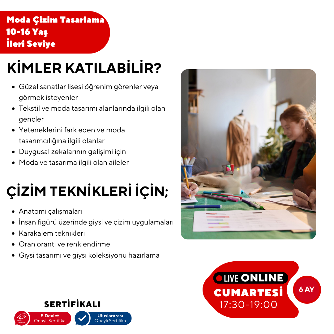 MODA TASARIM VE ÇİZİM - İleri Seviye ( 10-16 Yaş için )