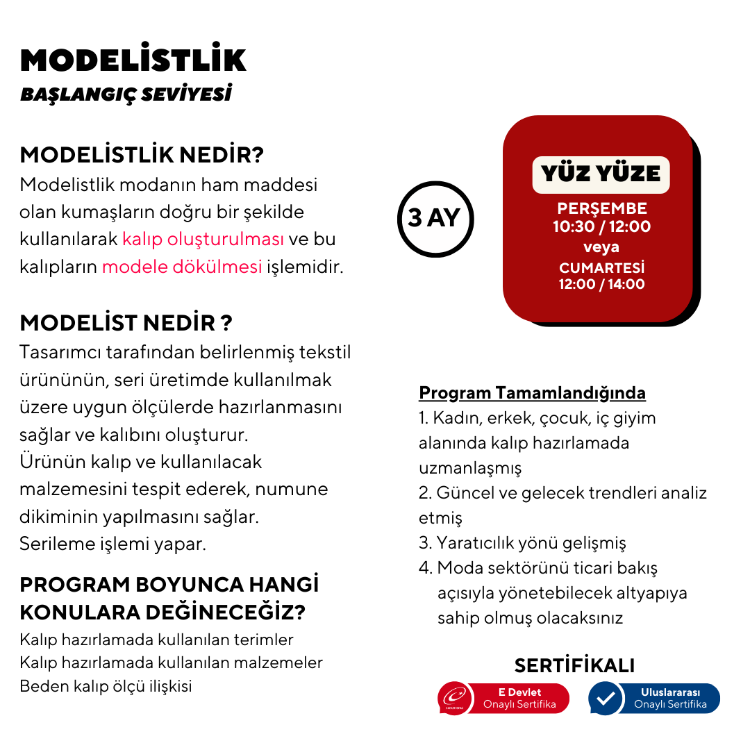 Sıfırdan başlayarak moda ve tekstil alanında kariyer hedefi olan, Kalıp çıkartmak isteyen. Tekstil ve moda sektörlerinde, "üretim ve tasarım” alanlarında kariyer sahibi olmak isteyen herkes katılabilir.