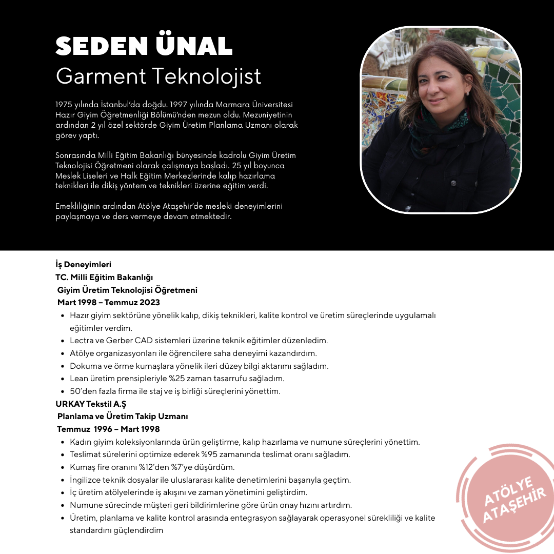 Hazır giyim sektörüne yönelik kalıp, dikiş teknikleri, kalite kontrol ve üretim süreçlerinde uygulamalı eğitimler verdim.