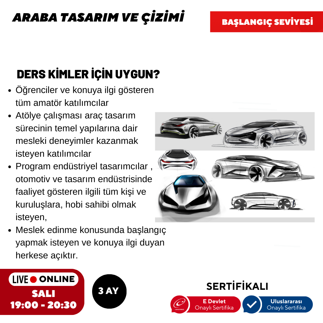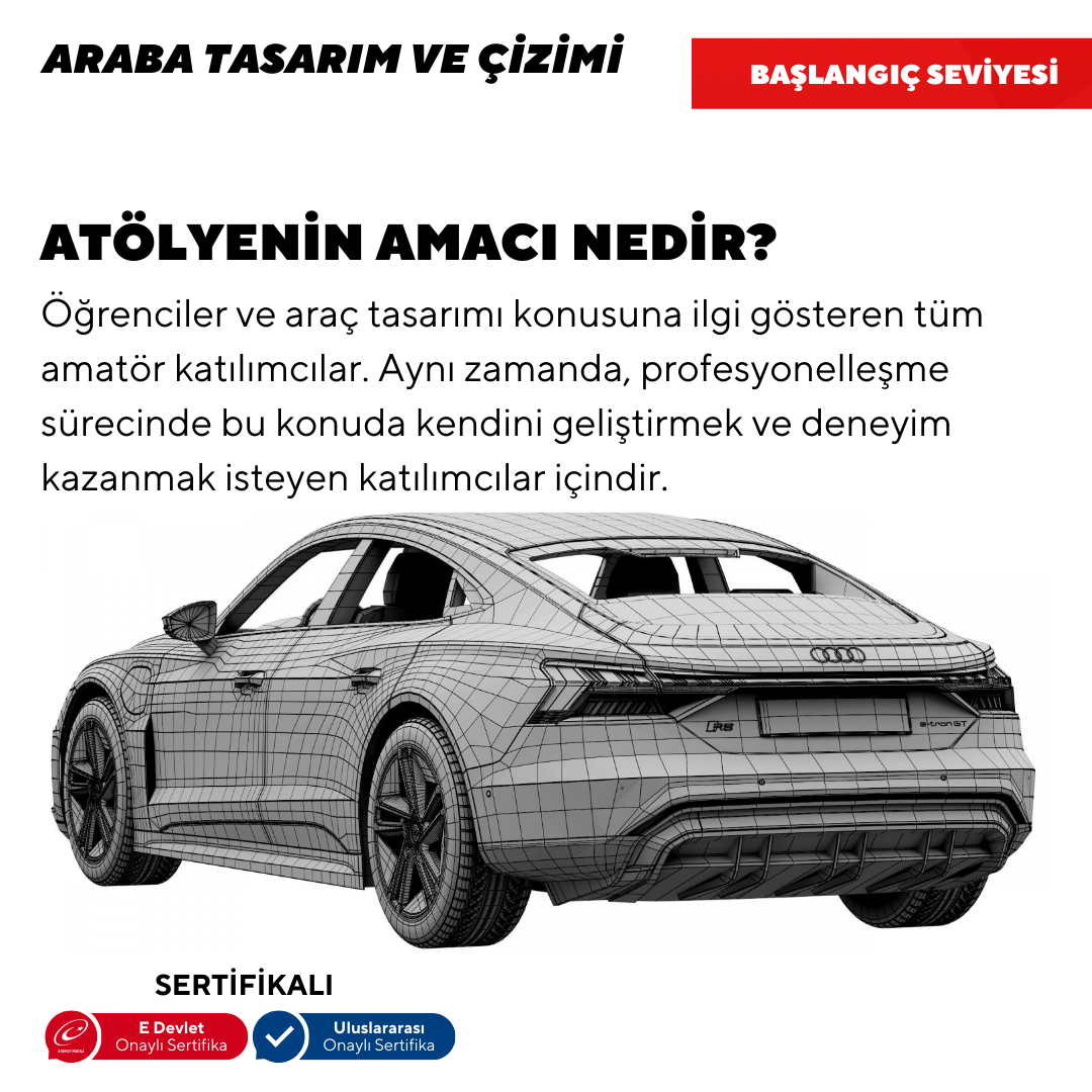 Araba Tasarım ve Çizimi- Başlangıç Seviyesi 3 Aylık - Uluslararası Geçerli Akredite Firması Eğitim Sertifikası