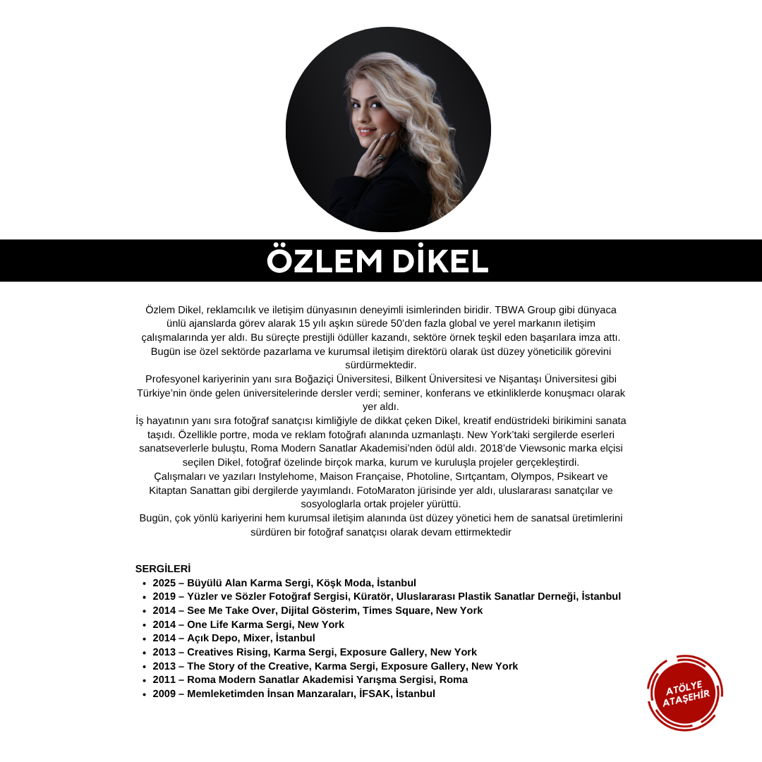 Fotoğraf sanatçısı Özlem Dikel’in objektifinden dünyanın farklı coğrafyalarından ve kendi ülkesinden insan yüzlerine dokunan bir yolculuğa davetlisiniz. Bu özel fotoğraf gösterisi ve workshop, portre fotoğrafçılığının büyüsünü keşfetmenizi sağlayacak. Hem stüdyo ortamında hem de dış mekânda portre çekmenin inceliklerini, ışığı doğru kullanarak duyguyu güçlendirme tekniklerini deneyimleyecek; bir bakışın ve bir anın fotoğraf karelerinde nasıl ölümsüzleştiğine tanıklık edeceksiniz.
