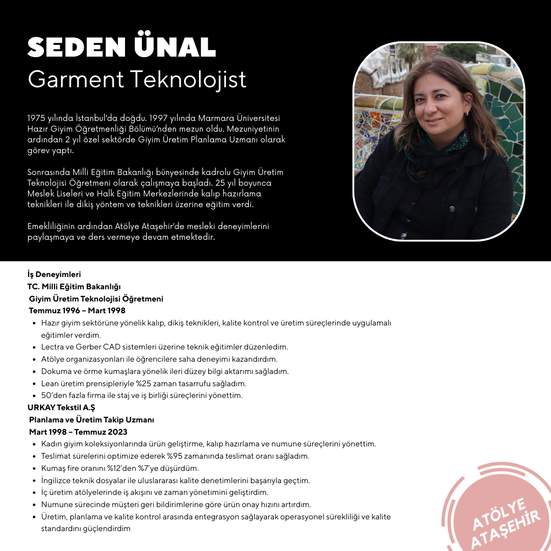 Hazır giyim sektörüne yönelik kalıp, dikiş teknikleri, kalite kontrol ve üretim süreçlerinde uygulamalı eğitimler verdim.