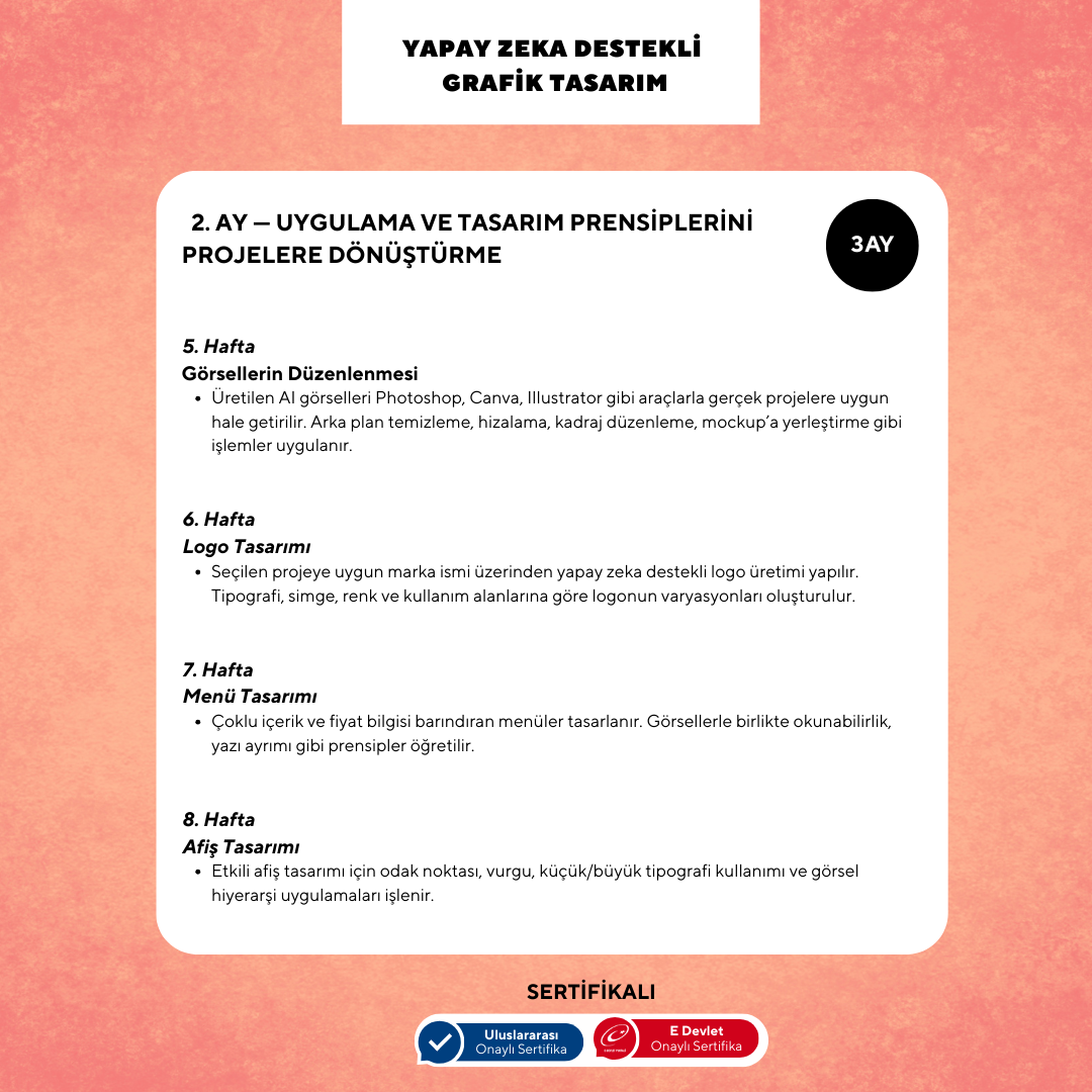 - Yapay zeka destekli grafik tasarım sürecinin nasıl kurgulanacağını, sıfırdan bir proje seçerek deneyimleyeceksiniz.