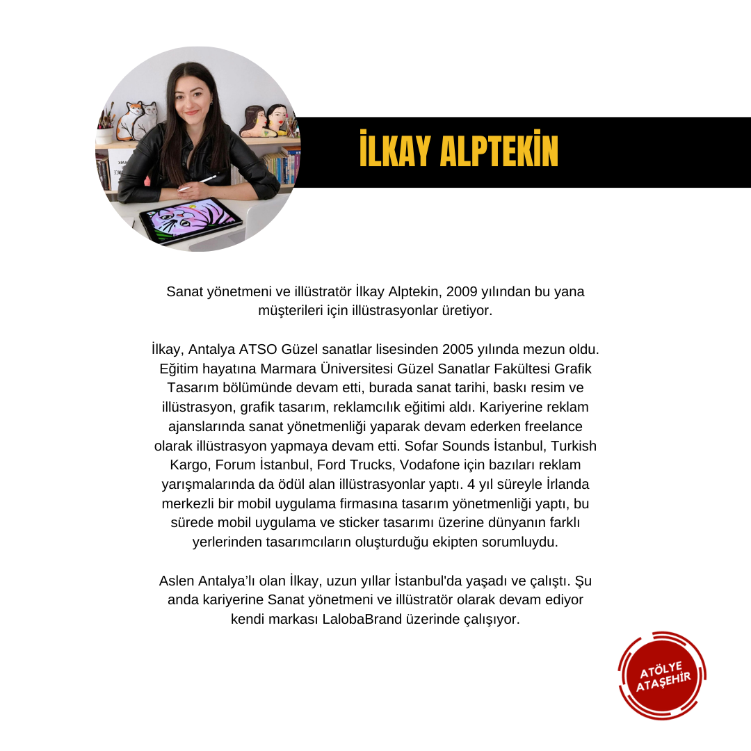 Sanat yönetmeni ve illüstratör İlkay Alptekin, 2009 yılından bu yana müşterileri için illüstrasyonlar üretiyor.