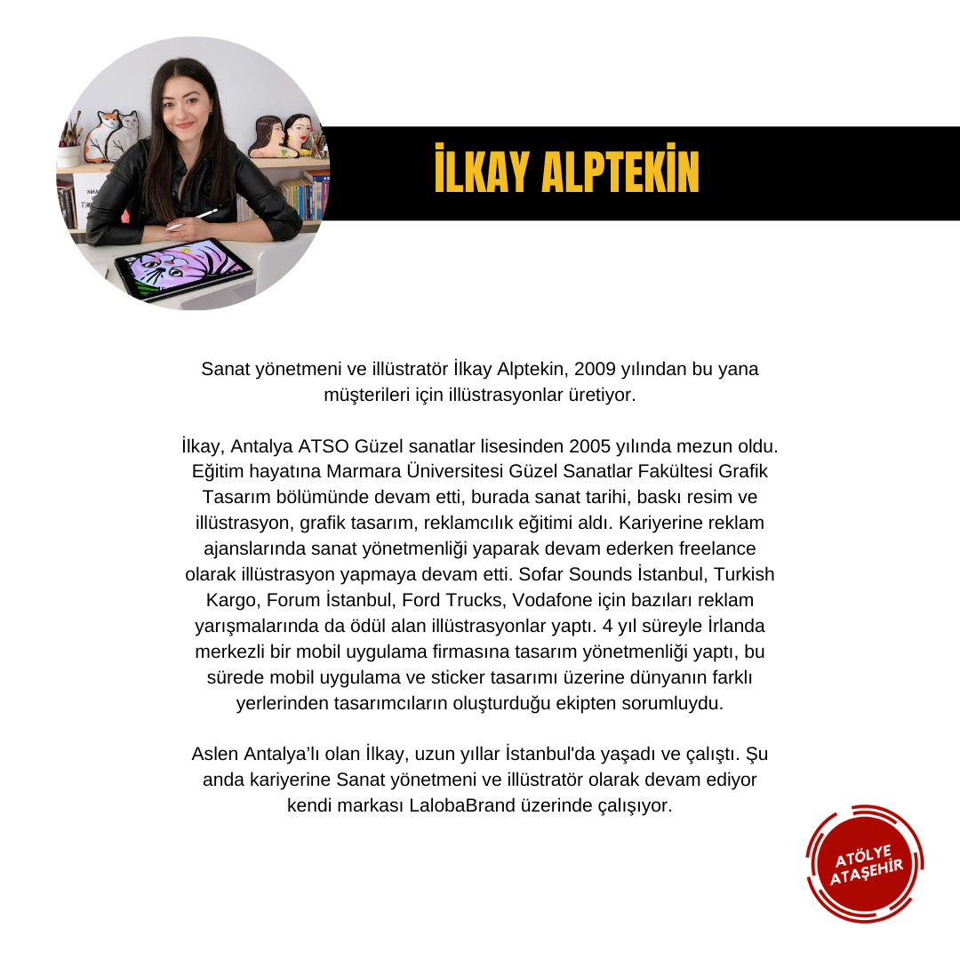 Aslen Antalya’lı olan İlkay, uzun yıllar İstanbul'da yaşadı ve çalıştı. Şu anda kariyerine Sanat yönetmeni ve illüstratör olarak devam ediyor kendi markası LalobaBrand üzerinde çalışıyor.