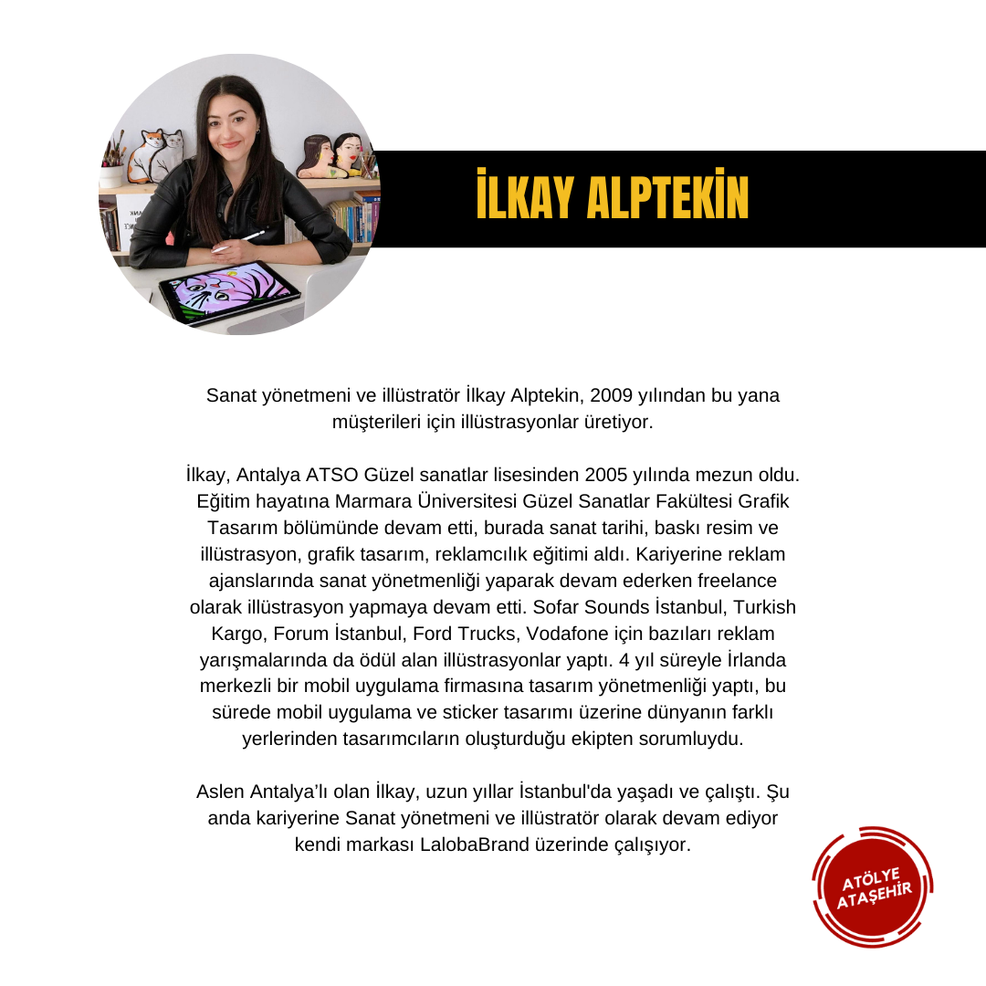 Sanat yönetmeni ve illüstratör İlkay Alptekin, 2009 yılından bu yana müşterileri için illüstrasyonlar üretiyor.